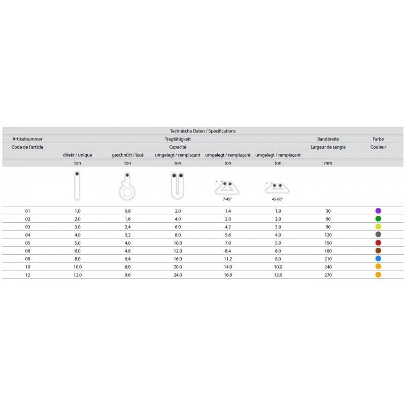 Verfügbar in verschiedenen Längen nach EN Norm farbcodiert.